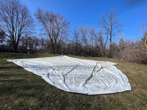 Selling a 72'x48' and 35' x 30' NiceRink liner. This liner was used to hold water for an ice rink and can be used to protect outdoor equipment, firewood, backyard ice rink, etc. This liner has a UV warranty that makes it safe from sunlight damage.