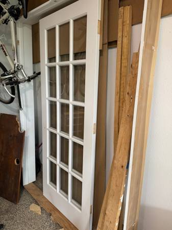 High Quality (not HD or Menards) excellent condition interior French doors. -replaced by doors that were custom made to match existing -hinges routed (3.5") -only 3/8" hole for faux doorknobs...