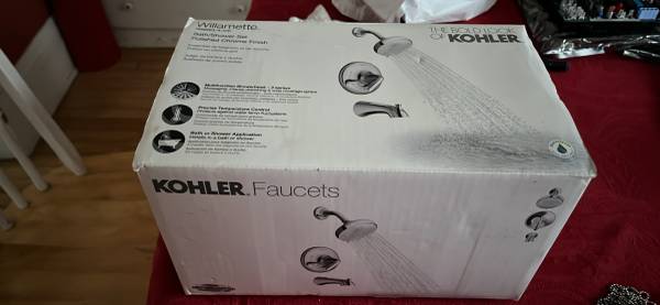 Kohler willamette bath shower set polished chrome finish. Still in the box . Never used.