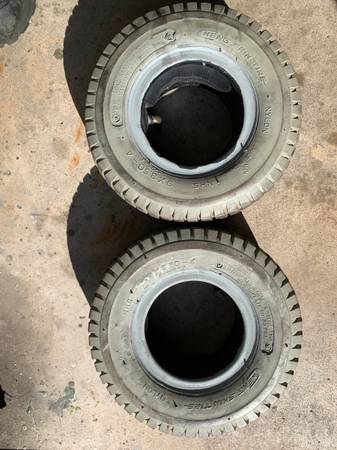 Three 9x3.5-4 pneumatic tires with decent tread. Lawnmowers predominately but these were used on wheelchairs.