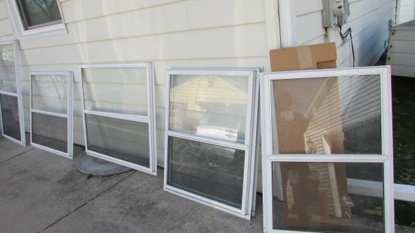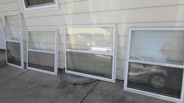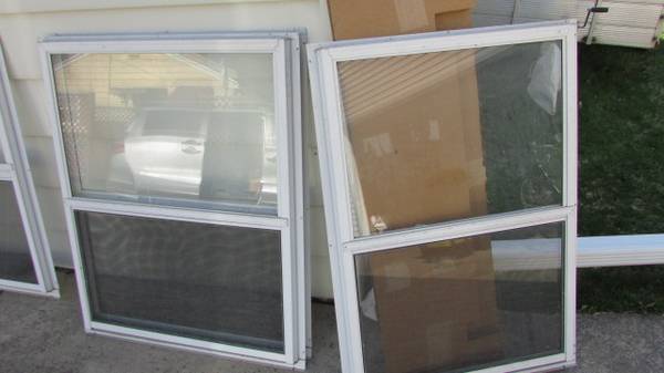 Used aluminum combination storm windows, sizes as follows: 43 3/4"W x 40"H. 4 identical units available. 32 1/4" W x 55 1/2"H 1 unit available 38"W x 40"H. 1 unit available. Price is $75.00 each.