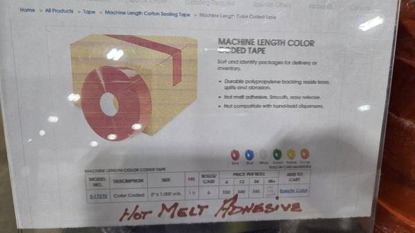 PACKAGING (HOT MELT ADHESIVE) TAPE ROLLS ($10.00 PER ROLL) ASSORTED COLORS DOES WORK WITH OR WITHOUT THE HEAT MACHINE RETAILS FOR $50.00 PER ROLL #HFHWB