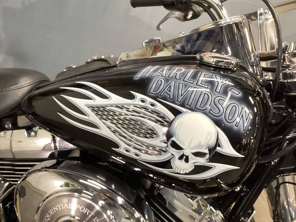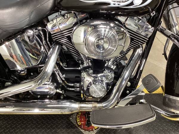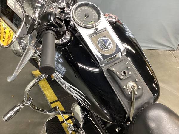 ONLY 37,653 MILES, 1-OWNER, CUSTOM PAINTED GAS TANK, SCREAMIN EAGLE EXHAUST, HIGH FLOW INTAKE, RIDER AND PASSENGER CHROME FLOORBOARDS, DOCKING HARDWARE, QUICK DETACHABLE BACKREST AND RACK, CRASHBAR, HIGHWAY PEGS, SADDLEBAGS, TANK STRIP, NEW FRONT TIRE, AND FUEL INJECTED! CLEAN AND LOADED CLASSIC SOFTAIL CRUISER!