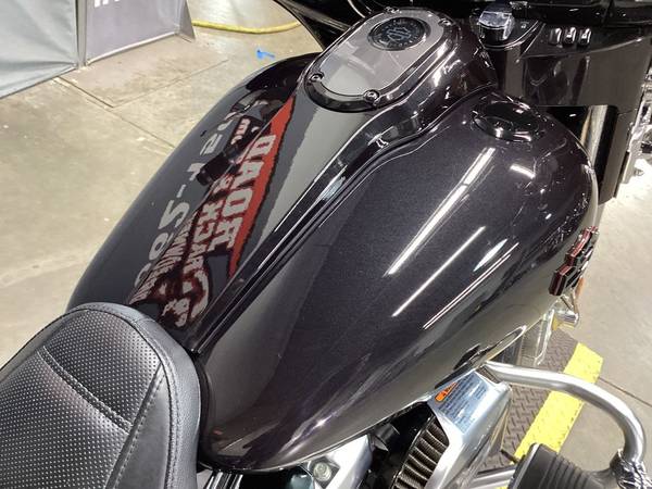 The premium hot rod bagger look is complete with Front 19-inch and Rear 18-inch wheels finished in Gloss Black/Satin.