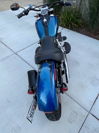 Beautiful, Low 6689 Miles, Adult Driven Softail Slim. Unique Daytona Blue Color. Vance & Hines Exhaust, High Flow Air, Nostalgia Grips, Leatherworks Solo Bag, Fat Boy Seat. Also includes Battery Tender, Saddleman Seat and Cover. $8700.00
