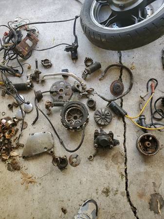 80 suzuki GS1100L parts project bike + extra parts, good start for a chopper/bobber or drivetrain for a reverse trike project, pulling tractor, monster go kart, etc. Bike ran and drove ok many years ago, hasnt been run since early 90's, carbs will need cleaning it turns over has good compression, paperwork was lost in the mid 90's, was last registered in wi in the early 90's, also included is 2 bins of parts from a 80 gs650L of the same vintage. Tank and key included, tank is clean inside, also included is a 4 into 1 header along with crash bars, extra rear wheel, extra electrical, etc. everything is there EXCEPT side covers + seat, turn signals + tail light + back frame seat support, muffelers, and rear fender to put it back to original. I have had it since 99, $600 cash takes it all, a lot of people want just the head as it is supposed to be the same as a gs1000e, I dont want to take apart a close to running bike, you could part it out for a lot more or put together a nice old school drag bike / street fighter. no text, no zelle, no codes phone calls or emails only