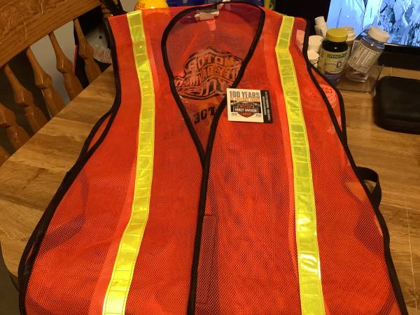 Available size extra large, closure is Velcro, comes with a special pin ,be seen out there. Safety vest also comes with reflective stripes. 2 - available $9.00each,or two for $ 15.00 Thank you.
