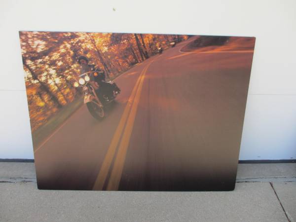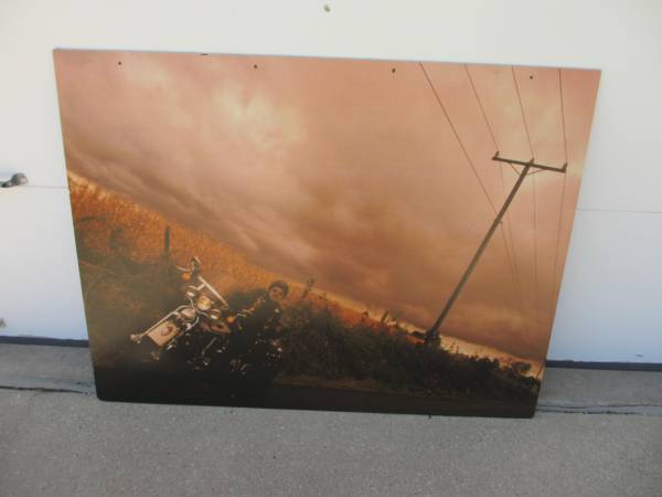 There are 2 Harley-Davidson posters mounted on a rigid foam core. Hang up in your shop or rec room. The scenic large board is 48" wide x 36.5" tall and is two sided. The Fatboy poster is single sided and is 36" wide x 24" tall. They are $5 each.