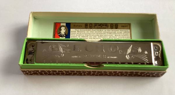 This is a lovely vintage M. Hohner Company ECHO Harmonica with its original colorful box. It was made in Germany and is in nice condition. It is from a non-smoking home.