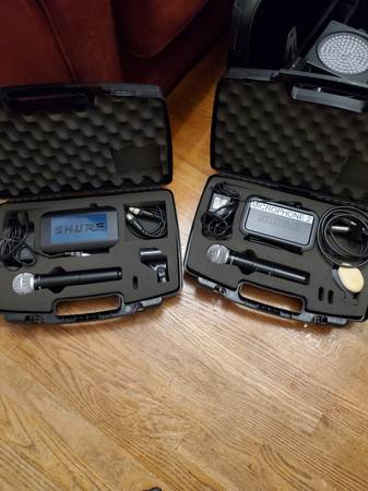 Shure Wireless mics: Mic on the Left: $260 (used 3 times-purchased 2024). Mic on the right-$60