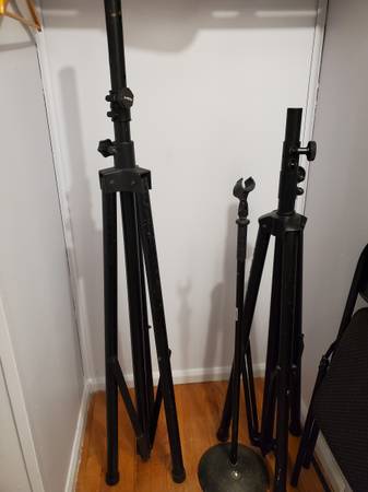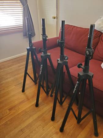 Speaker Stands (4)-$75 The one on the far right is works great. The other 3, one knob doesn't tighten.