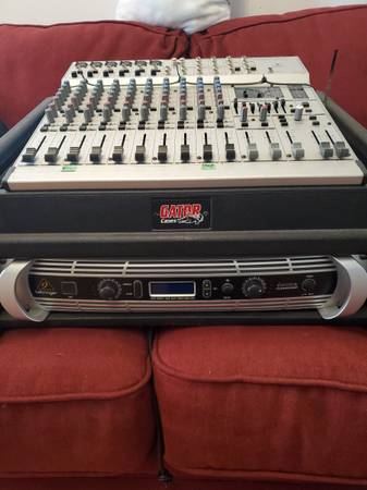 Gator Rack, Behringer amp, 2 cords for speakers, Behringer mixer-$260