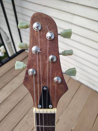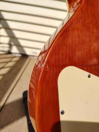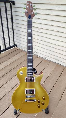 I bought this guitar new in 2020 and made a few modifications to it, but have since changed mostly everything back to its original state. Having had several different pickups in this guitar, I feel the stock pickups actually sound really good. The gloss finish on the back of the neck was removed by a light sanding with a scotch brite pad. The headstock was sanded down to the wood, because I despised the Indio logo and liked the wood grain, to which I applied boiled linseed oil to create a satin finish. There is a little chipping to the finish along the edge in the back of the body which is photographed. There is also a crack in the neck pickup ring. Other than a few other light scratches, it's in really good condition and plays really well. Comes with a gig bag. These guitars are sold for $250 on Monoprice's website, but I don't think they're making the gold tops anymore.