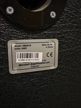 Up for grabs here is a Marshall 8x10 Bass Cabinet (Celestion loaded - 4ohm) ready to rock! It is rated for 640 Watts RMS (1280 peak), and is quite possibly one of the finest bass cabinets ever produced! Built to survive a nuclear war..... sounds amazing....Originally cost $2350. I have two of these cabs available..... check my other auctions ;)