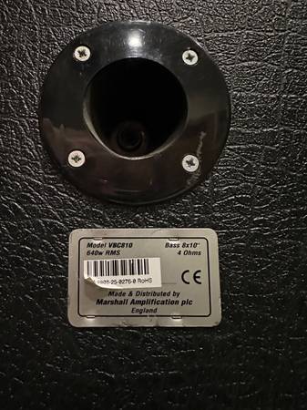 Up for grabs here is a Marshall 8x10 Bass Cabinet (Celestion loaded - 4ohm) ready to rock! It is rated for 640 Watts RMS (1280 peak), and is quite possibly one of the finest bass cabinets ever produced! Built to survive a nuclear war..... sounds amazing....Originally cost $2350. I have two of these cabs available..... debating about whether or not to sell the second one ;)