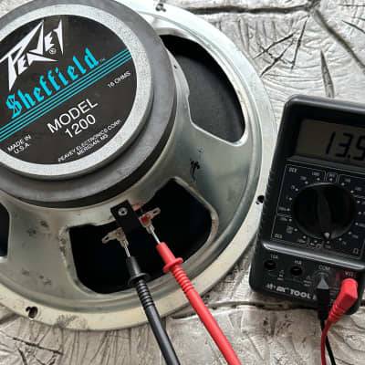 Up for sale here is a Peavey 5150 (model 1200) Sheffield speaker in excellent condition! It was pulled from an original Peavey 2x12 cabinet and is lightly broken-in! This cabinet was used in a private, smoke-free production studio and was never toured. (It sounds like a high-powered Celestion Greenback with a bit of Celestion V30!). Here is a great way to get amazing tone without breaking the bank!!