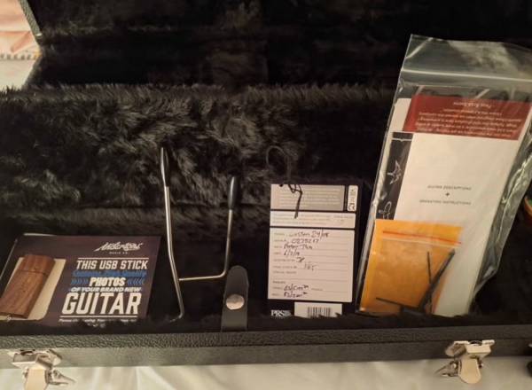The guitar comes with original case, case candy, 2 trem arms (standard and short) and comes with a genuine black leather PRS birds strap.