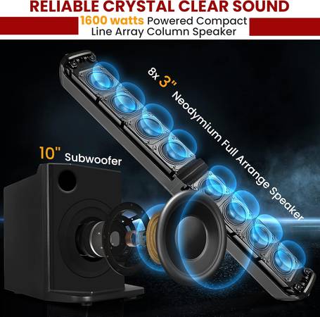 1600 WATT POWER: This Line Array Column Speaker has a rugged, durable and reliable sound output and has 10-Inch Subwoofer, 8 x 3-Inch Drivers, DSP and powered with a max output of 1600W allowing you to set your favorite tracks as loud as you want