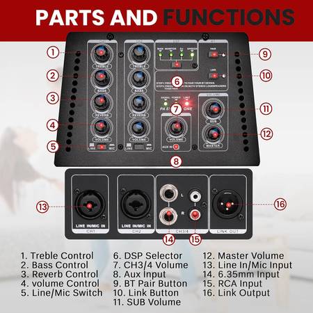 ADJUSTABLE CONTROLS: The Line Array Column Speaker’s adjustable Master Volume, SUB Volume, Treble, Bass Adjustable, Reverb, TOP Panel Rotary Dial & Button Control Center, allow you to easily navigate and control the speaker system.