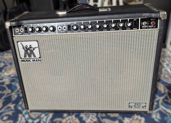 This Music Man combo is one of the more sought-after Music Man models as it is a great alternative to a vintage Fender Twin Reverb. It features two channels along with both reverb and tremolo, though the tremolo on this particular unit is not working. I've never used tremolo so I've never fixed it, but everything else is in working order. The unit was re-tubed with JJ Tubes a few years back, and those tubes have only nominal hours on them. The speakers are the original Music Man ceramics, which provide excellent sound quality. Besides the tubes, everything appears to be fairly stock. It's spent much of his life in a Anvil-style case, so it's been well-protected and stored.