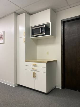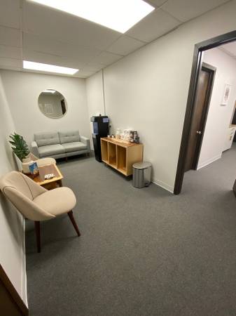 Included in Rent: shared & fully-furnished waiting room, locked private office, access to private Wi-Fi, keypad entry to office suite ensuring security, heat/AC, building fees, cleaning service, and filtered water service for yourself & clients.
