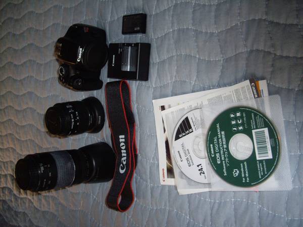 This set is several years old, but has set on the shelf for virtually all of them. Very little use, well cared for. Not new, but as close as can be. Battery is good and holds a charge well, lenses include hoods and one UV filter, 8GB SanDisk SD card, and screen protectors for the camera. Everything is packed in original boxes. Great camera that takes excellent pics but never gets used.