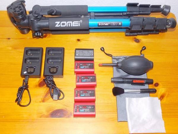 Lots of accessories: OPTEKA 10x Macro conversion lens - A set of top quality extension rings of 10mm, 16mm and 21mm - A "Dummy battery" set for use during long-term shooting (connect to a power outlet) - A Ring flash set from König - A good tripod from ZOMEI (max height 150cm).