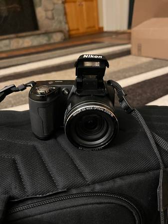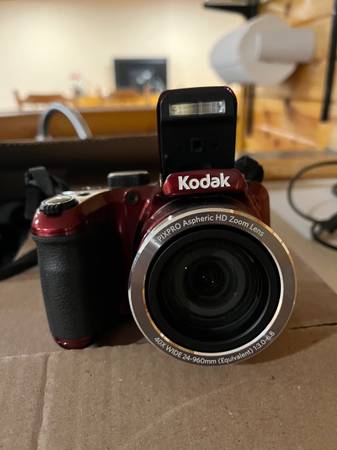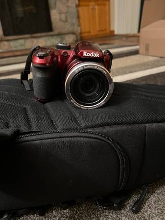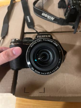 2 working cameras. Nikon coolpix L110 was sold! Fujifilm Finepix S, and Kodak Pixpro AZ401. $50 for Fujifilm and Kodak $40 and the camera bag is brand new without tags for $20. Prices obo or make bundle deal. All cameras run on 4 AA batteries and are as is. None of them come with any cables. The red Kodak has some corrosion on the inside battery lid, always had from when I bought it used but hasn’t affected performance.