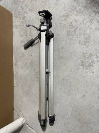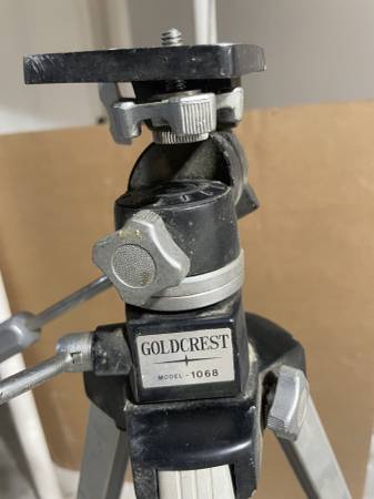 Camera Tripod, Goldcrest Aluminum. This professional grade tripod was made in Tokyo, Japan and extends to 56” tall. It has a pan/tilt head, locking adjustable legs, and rubber-tipped feet. Great for serious or hobby camera work, telescopes, and other optical instruments. It is very lightly used and undamaged. Prefer local cash sale. Seller lives near the