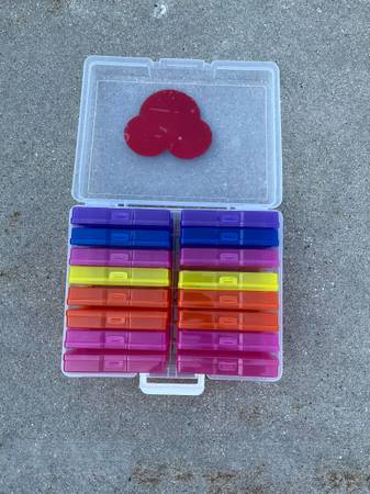 Selling an unused rainbow Little Mermaid photo case. Includes a handle and individual photo cartridges. Similar to https://www.michaels.com/product/rainbow-photo-craft-keeper-by-simply-tidy-10468242