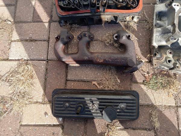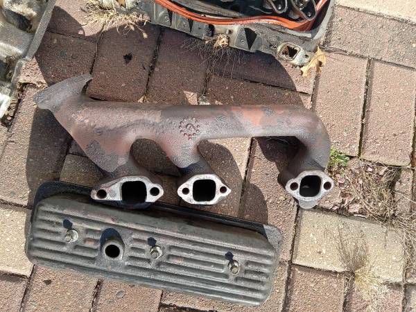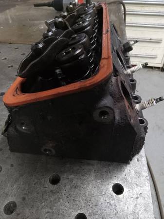 $60 - pair of cylinder heads + valve covers, one bent valve