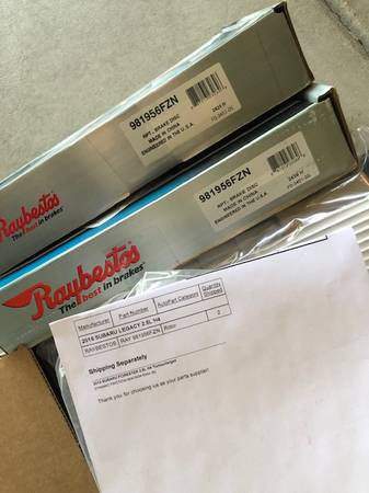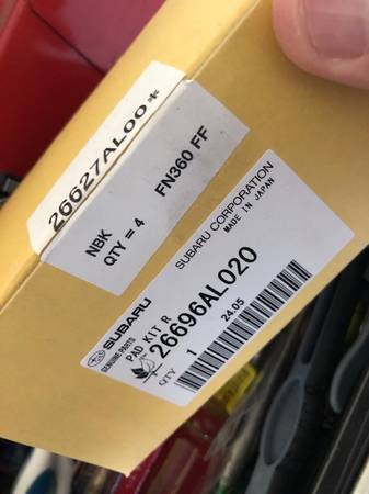 These are new parts that were purchased for a 2016 Legacy that we traded in on a new Outback before they were needed/installed. Brake pad box was opened (but everything is in the box) to copy the instructions for a friend who bought different ones for a 2015 Impreza that didn't have instructions.