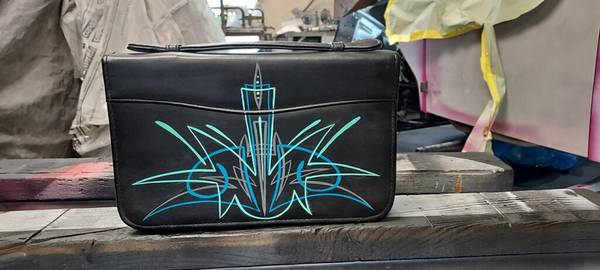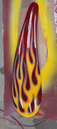 Custom hand pinstriping, graphics, lettering, patina lettering, flames, air brushing, painting, etc. Bring me anything and I'll customize it for you. Cars, trucks, motorcycles, boats, signs, helmets, tools, etc. E-mail for quote
