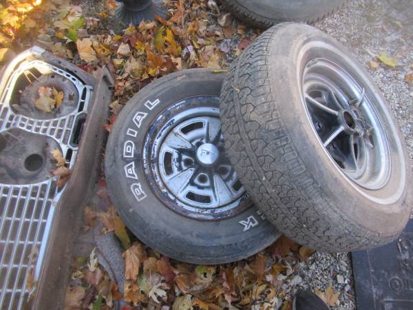 I have For Sale (4) 14" Tires and Wheels dry rotted rollers only NOT road worthy . (2) 15 " Olds Rally rims (1) 14" Buick (1) 14 " Pontiac Need gone See Pics Make Offer