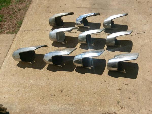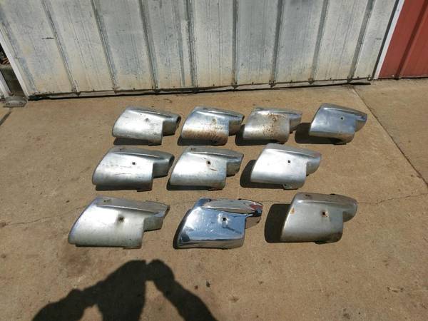 1957 Chevrolet left rear bumper ends. All are good for a driver or good cores for rechrome. No rust holes in any of them. Prices vary on condition. $25-$85. I have many more 1957 Chevrolet parts if...