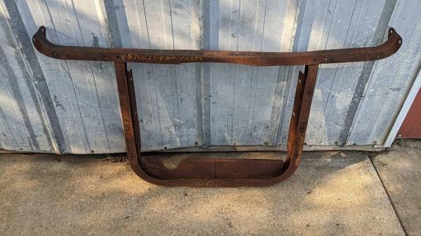 1957 Chevy 8 cylinder radiator support. Not perfect but could be restored. This is not correct for 55 & 56 Chevys as the top bar is different. I also have a 1957 Chevrolet 6 cylinder radiator support where the radiator mounts in front of the support if you have a 6 cylinder or mounting a big block in your car.