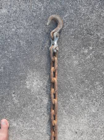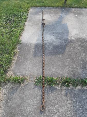 10 Foot + 1/2" Chain Link Diameter Vintage USA Made in America Heavy Duty Tow Chain with Shock Absorber and Hook