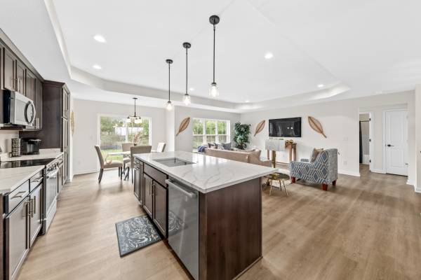 NEW CONSTRUCTION Ranch home on cul de sac in Franklin's Tess Creek Estates subdivision. The spacious open layout is perfect for entertaining and staying connected! The kitchen features a large center island w/ QUARTZ TOPS! This MOVE-IN- READY home INCLUDES THE DRIVEWAY, and large backyard PATIO! The spacious 1,500 sq. ft. Lower Level features 9 FOOT CEILINGS, an egress window, and is already plumbed for a THIRD FULL BATH! Incredible opportunity to add tremendous value and space on your own timeline! Lot will be graded and seeded soon! Convenient location - close to parks, lakes, shopping, restaurants and Franklin's outstanding schools!