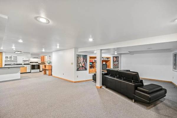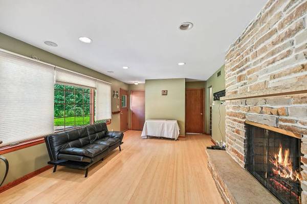 Spacious and sun-filled tri-level in desirable River Edge offers flexibility and charm. Main level features a rare bonus bedroom with updated full bath, slate tile foyer, and open living/dining with double-sided gas fireplace. Chef's kitchen boasts large island, double ovens, cooktop, custom mixer cabinet, and glass block backsplash open to cozy family room with gas fireplace and patio access. Upper level includes 3 bedrooms and updated full bath. Lower level is finished with second cooking area and rec space. Enjoy a beautifully landscaped, private backyard, perfect for entertaining. Also includes home office/den, laundry room, and attached 2.5-car garage. Numerous updates throughout--move-in ready!