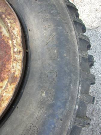 Lugged tire in good condition. Size" 21 x 9.00 - 8