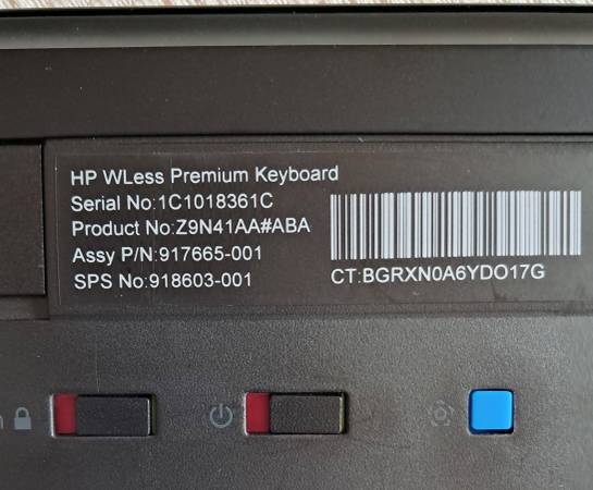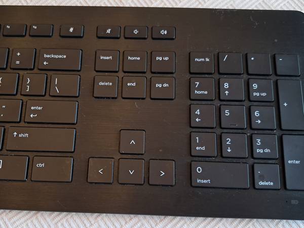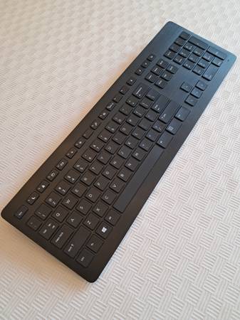 New HP wireless rechargeable keyboard. Anodized aluminum. Product No. Z9N41AA. Includes accessories.