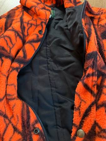Pre-Owned Cabelas Brand Adult Blaze Orange /Black quiet cloth Camo Hunting or ice fishing Coveralls with pockets, zippered and snap-able legs. Cabelas brand, Dry Plus model. Non smoker and no pets. These were used to deer hunt a few times. Ad will be removed upon sale.