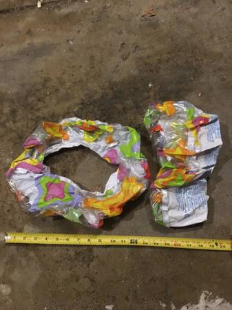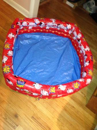 2) kids swimming pool. very nice colorful. Have 3 separated air blow in valves for easy blow air in. and flattened for storage. size 45" diameter and 16" height. $15