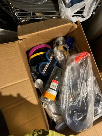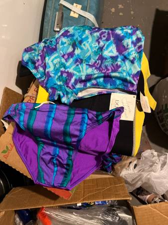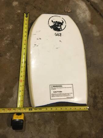 1) swimming pool float, white green top. other side is blue. can blow air in and can be flattened for storage after use. size 71" x26". $10