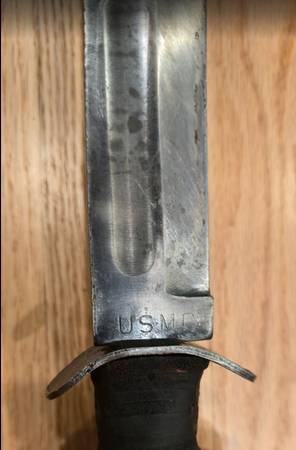 For Sale: KA-BAR, USMC, Olean NY USA Vintage Fixed Blade Knife with Original Leather Sheath. 12" overall length 7" blade length **Item is for collectible, decorative, or display purposes only**...