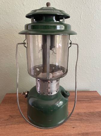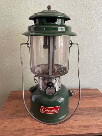 A Vintage Coleman 2-mantle lantern from the late ‘60’s. Includes a vintage bracket for hanging from a boat.