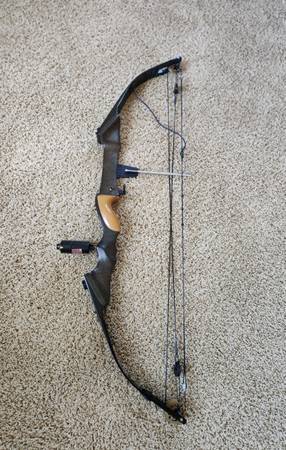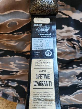 Martin compound bow with everything in picture. Bow is a good starter bow 25 to 40 pound pull with 28"draw 11 arrows that all need to be reflected, quiver, sight and vintage arrow line to Aid tracking what was a joke and soft case. Need to be set up. No reasonable offer refused.