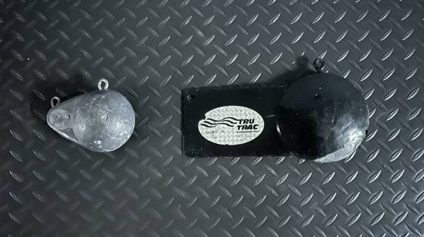 Two down rigger balls for fishing salmon. The Tru Trac is 8 pounds. The plastic covering is torn up on the bottom but does not impact performance. The round downrigger weight is 8 pounds. $25 each or both for $45.