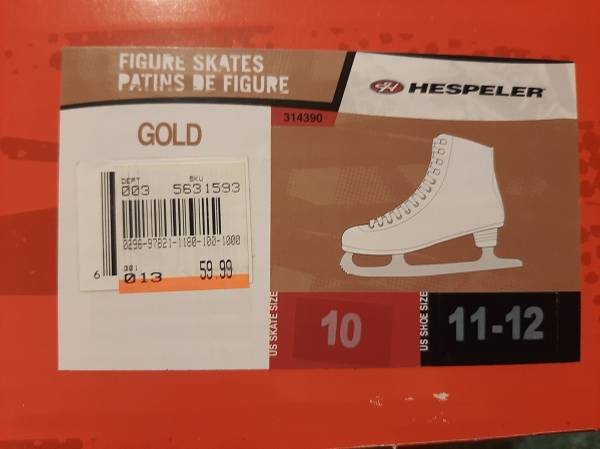 New Hespeler Figure Skates. Skate size 10, shoe size 11-12. See pictures for details.