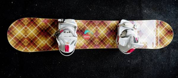 Sims Horizon Snowboard - Women's - Used: Carve a line with the Sims Horizon Snowboard. This all-mountain board is designed with a light wooden core, constructed for minimum weight, maximum strength, and a woman's flex pattern. The UMHW-extruded base is both durable and easy to repair, while bi-axial fiberglass further reduces weight and offers a more forgiving ride. Rubber foil dampeners provide a smooth ride and increased bonding strength between the edge and sidewall. A tech loaded women’s board, the Sims Horizon Snowboard is a great choice for all riders trying to take theirs skills to the next level!